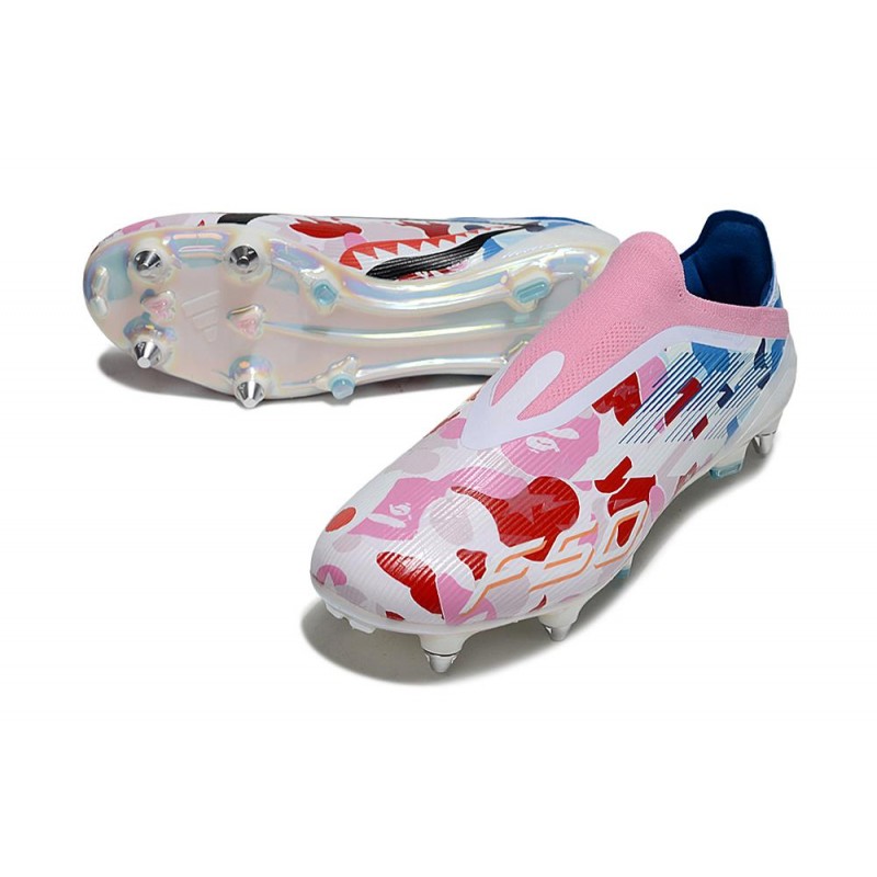 Korki Adidas F50 Elite Laceless SG-Pro Biały Czerwony Niebieski